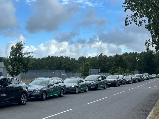 Udenfor terminalen holder busser og taxaer klar til at transportere gæsterne til Allinge.