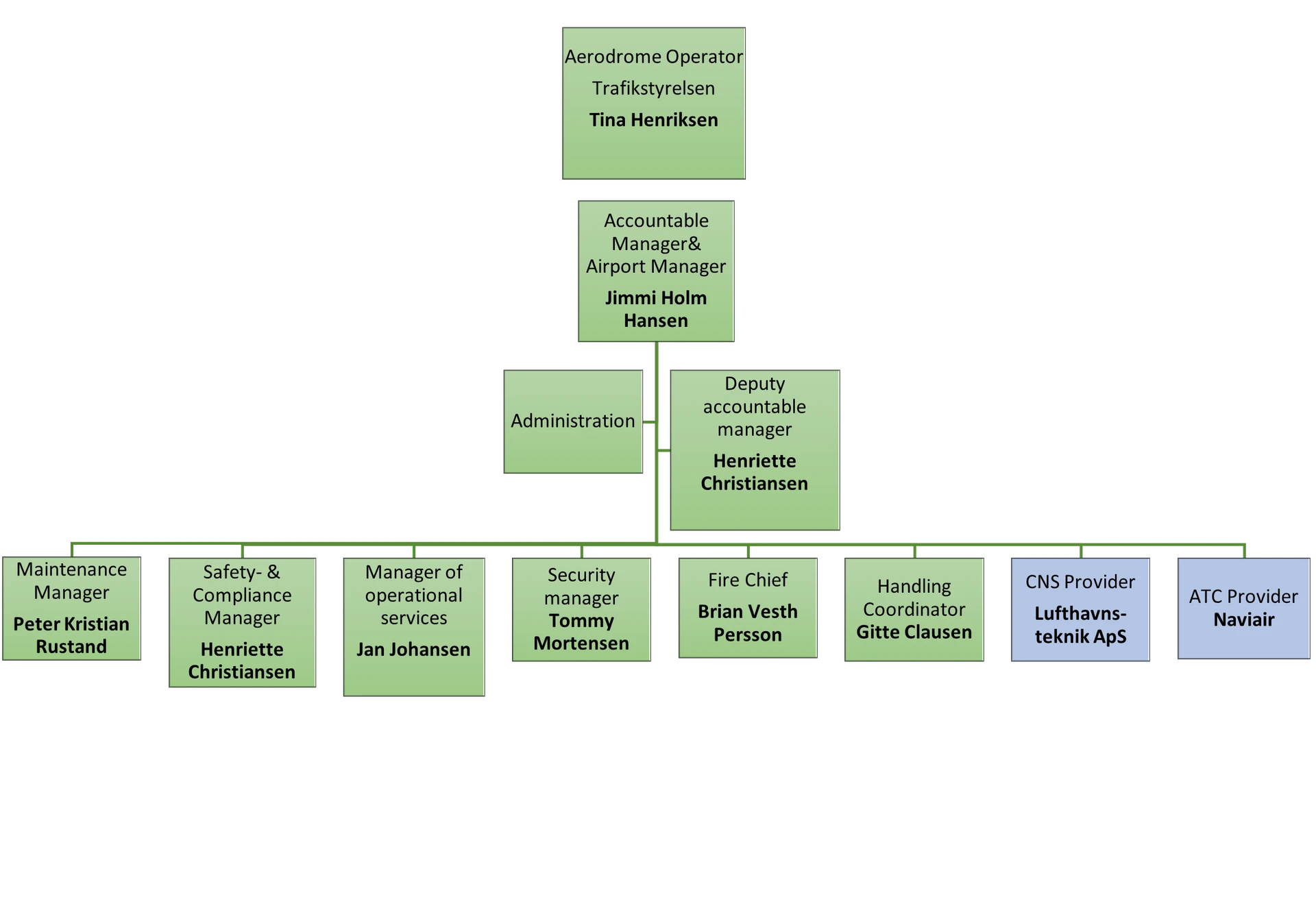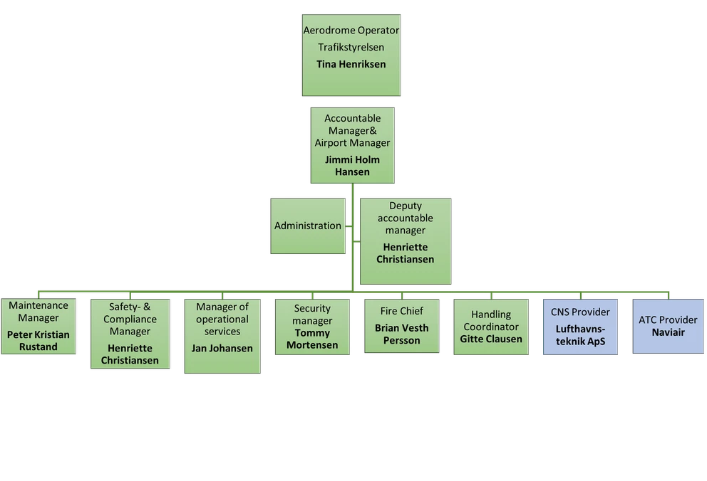 Bornholms Lufthavn er en statslufthavn, hvis administration drives af Trafikstyrelsen, mens lufthavnen selv driver sin operationelle drift.
